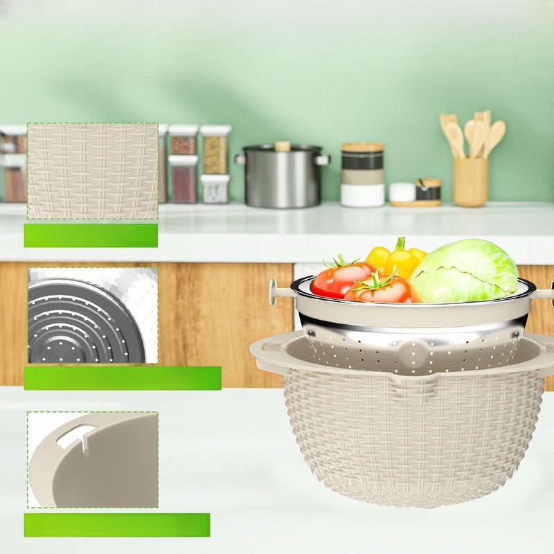 ชุดตะกร้าผักสแตนเลสสองชั้นสำหรับครัวเรือน